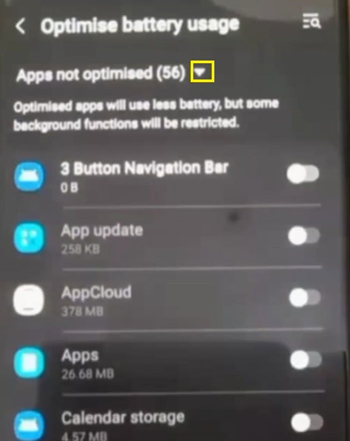 C Step 2 : Now you will directly find Apps Not Optimised page with list.