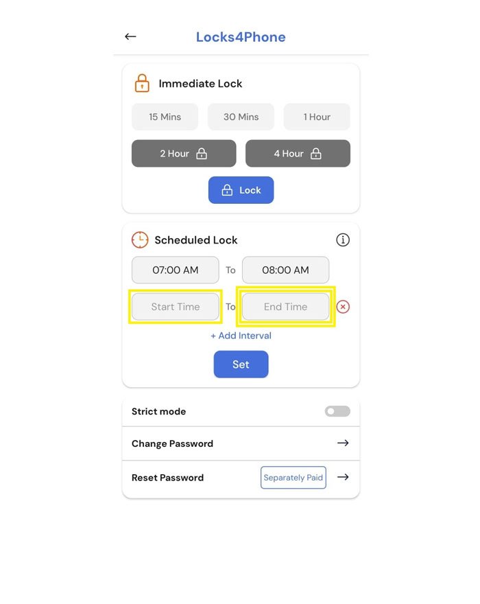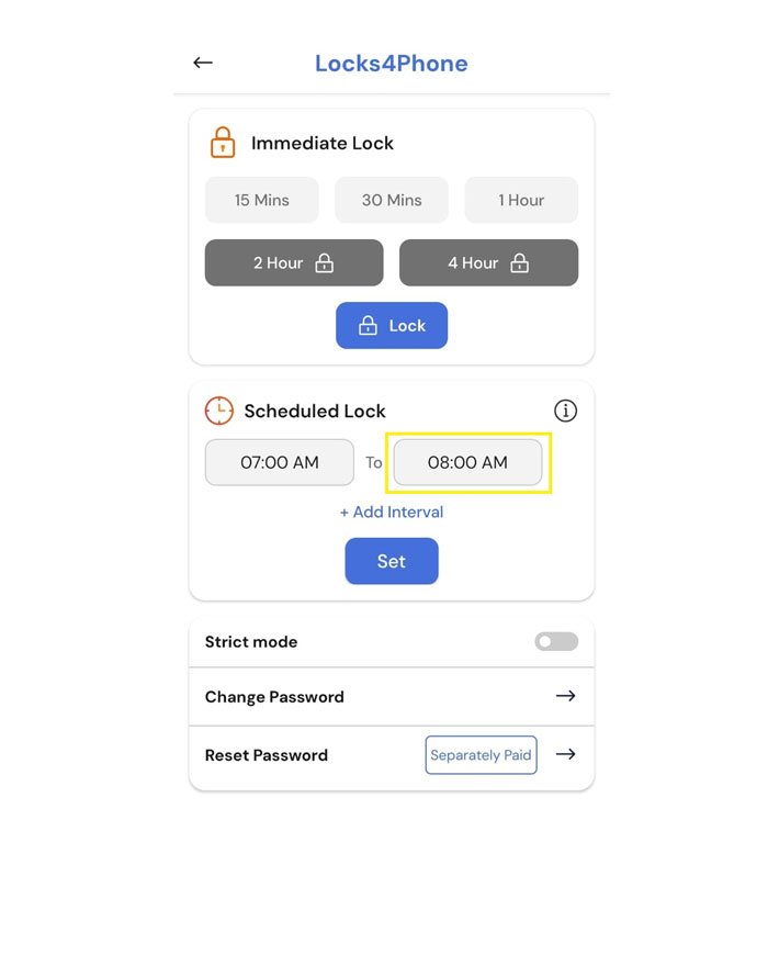 This step-by-step guide walks you through exactly how to set up both Immediate Locks and Scheduled Locks in our app.
